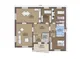 В доме предусмотрено три спальни, что идеально подходит для семейного проживания. Также имеется одна ванная комната. Отсутствие гаража компенсируется достаточным пространством внутри дома для размещения всех необходимых помещений. Благодаря продуманной планировке каждый член семьи найдёт своё уютное место.
